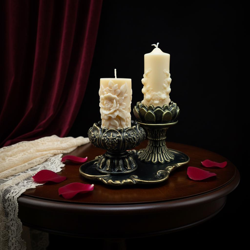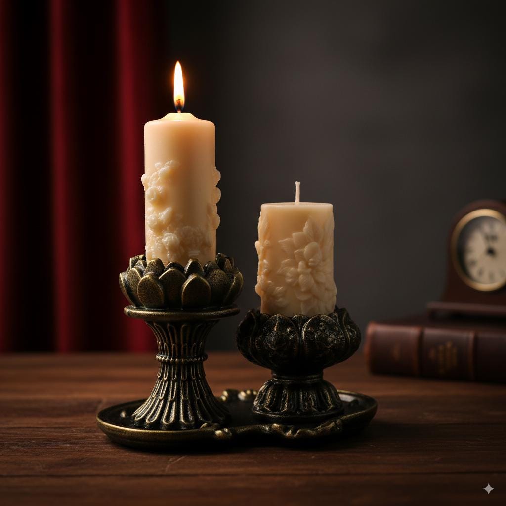 o Authentic Antique-Style Holders: Candles are beautifully presented in rich antique bronze-finished lotus-petal style holders, adding a touch of vintage grandeur.