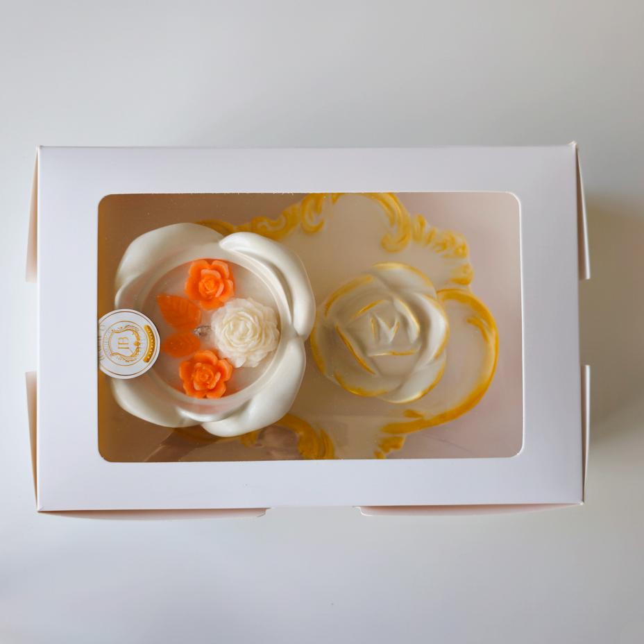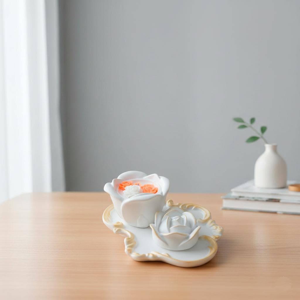 ✨Indulge in timeless elegance with our Exquisite Rose Blossom Candle Gift Set! This stunning collection is designed to captivate, featuring a beautifully crafted rose-shaped bowl candle filled with delicate wax flower embeds, alongside a charming rose votive candle, all presented on a luxurious, ornate tray with elegant gold accents. It's more than just candles; it's a complete decorative statement that brings a touch of opulence and romance to any living space.