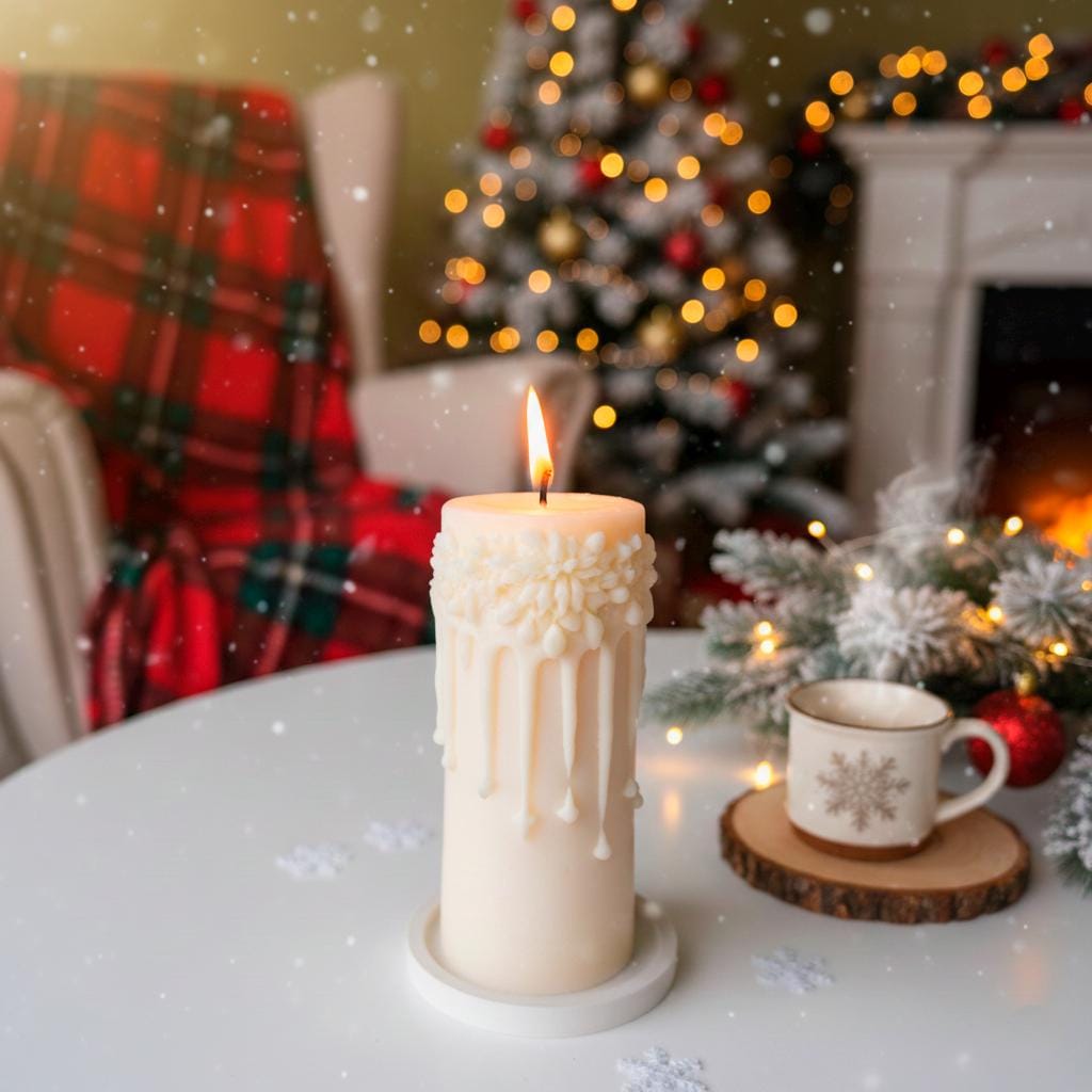 Step into a cozy winter wonderland with this enchanting, intricately carved pillar candle. This exquisite piece features a beautifully sculpted design that captures the magic of the season. Around its top, a delicate band of frosty berries and foliage wraps gracefully, transitioning down to reveal charming carved winter figures, possibly carolers or festive gnomes, beneath falling snowflakes. Presented in a warm, inviting cream or ivory hue, this candle is more than just a source of light; it's a handcrafted work of art designed to infuse your home with warmth, cheer, and a touch of nostalgic charm. It creates an instant festive focal point, perfect for holiday gatherings or quiet evenings by the fire.
