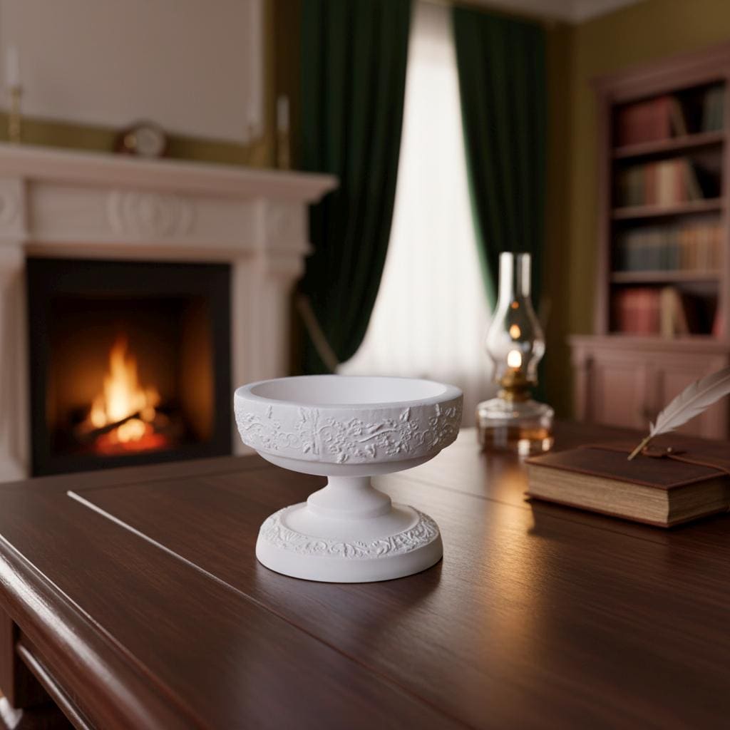This versatile candle holder is designed to enhance shelves, mantels, or intimate corners, offering a touch of vintage-inspired sophistication. It is available in two distinct finishes to perfectly complement your aesthetic: choose the rich Antique Bronze (as pictured) for a captivating blend of dark, weathered metal with subtle golden highlights, adding old-world character and warmth; or opt for the Classic White finish for a pristine, airy, and effortlessly elegant look that brightens any traditional or modern space. Whether used to cradle a tea light, a votive candle, a small pillar, or simply as a standalone decorative trinket dish, it promises to be a captivating focal point, creating an atmosphere of refined beauty.