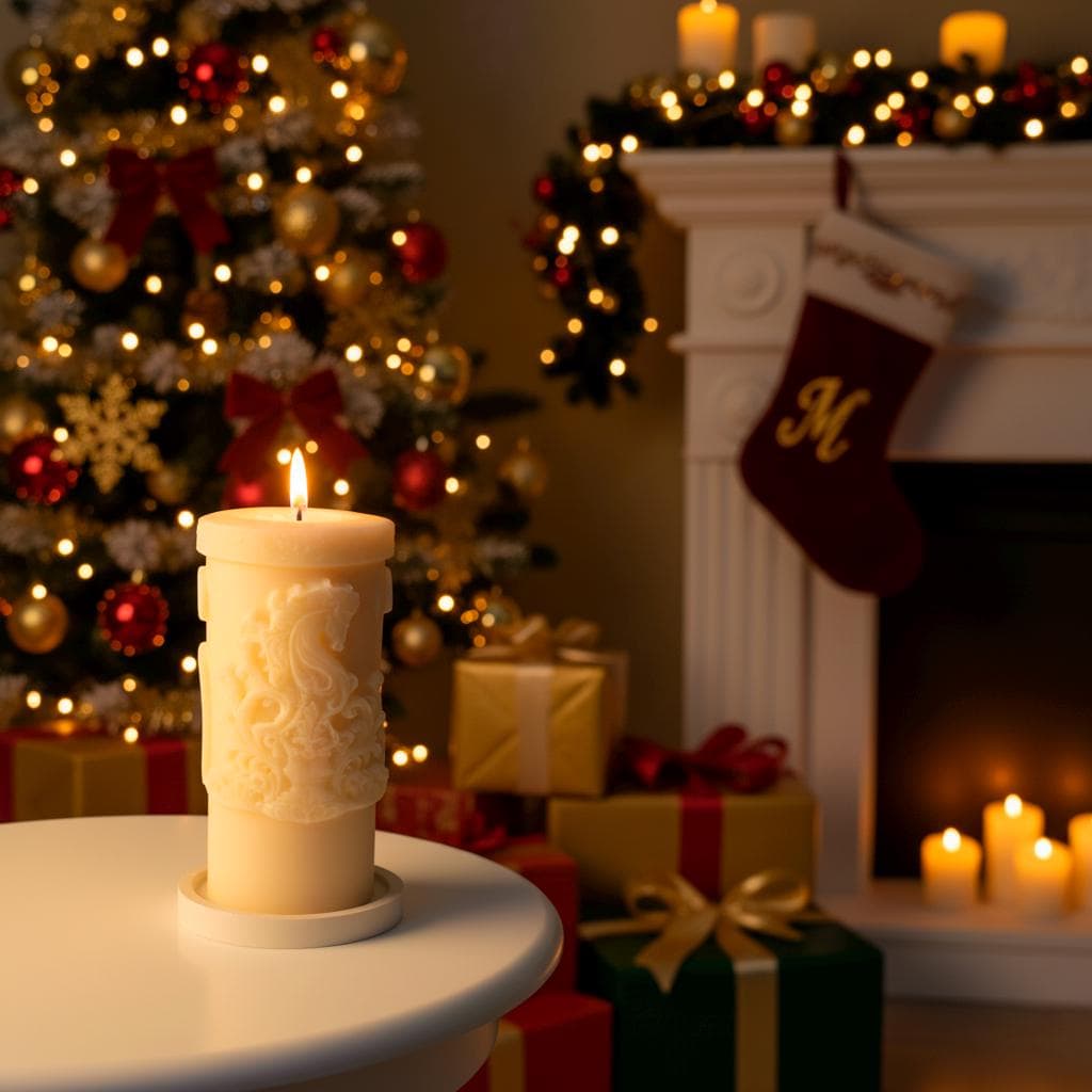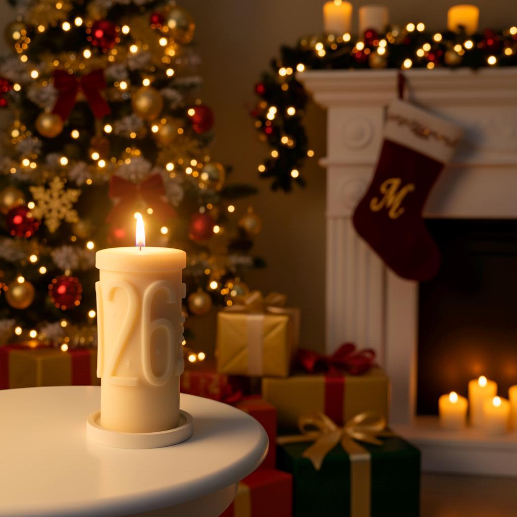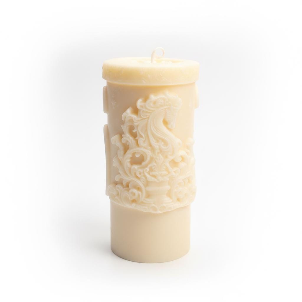 Christmas Embossed Soy Wax Pillar Candle | Handcrafted Horse & "2026" Design | Unscented Decorative Art Candle