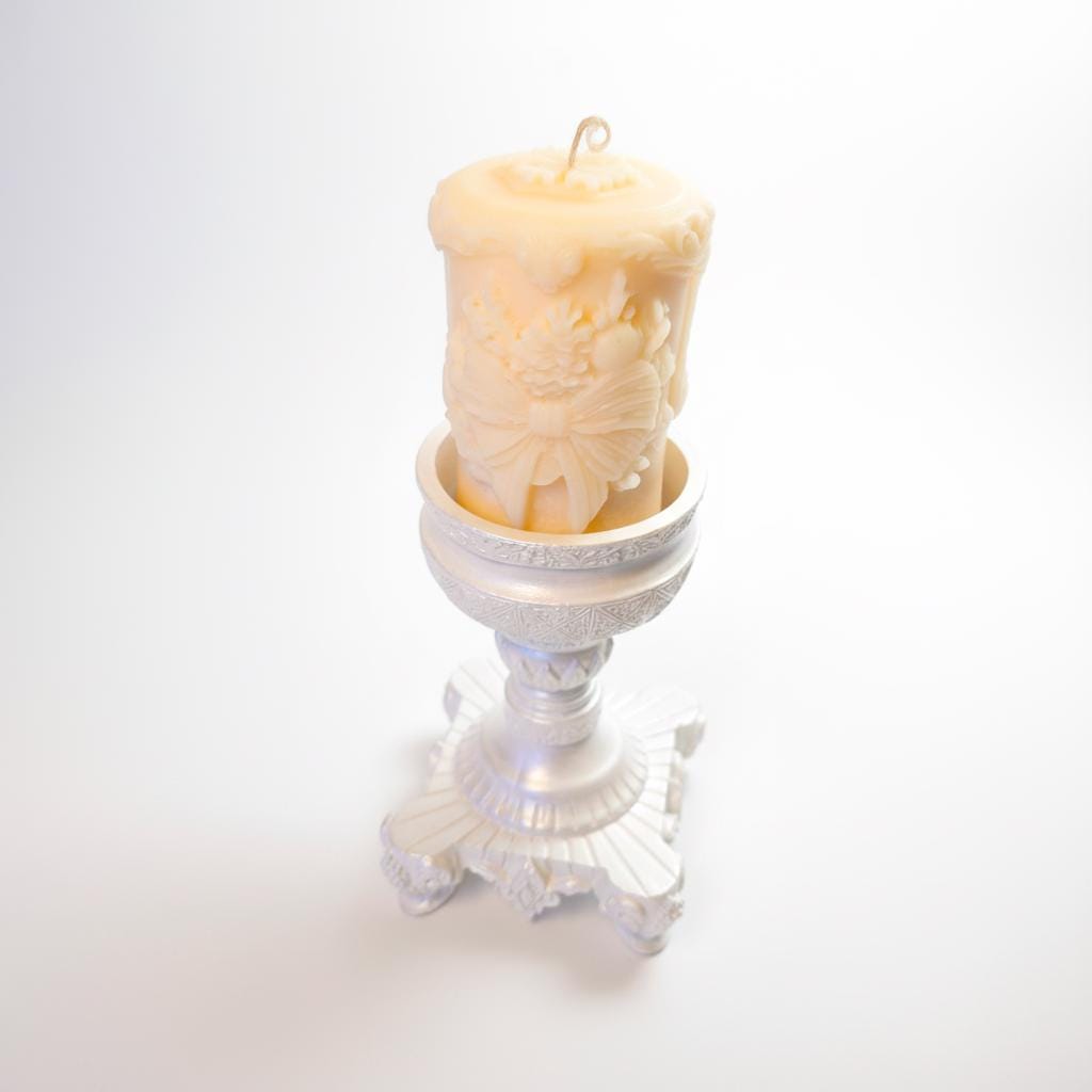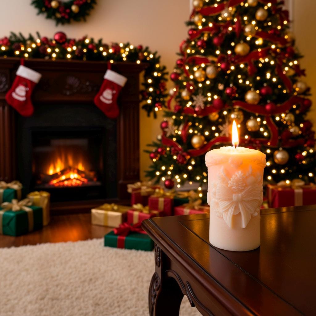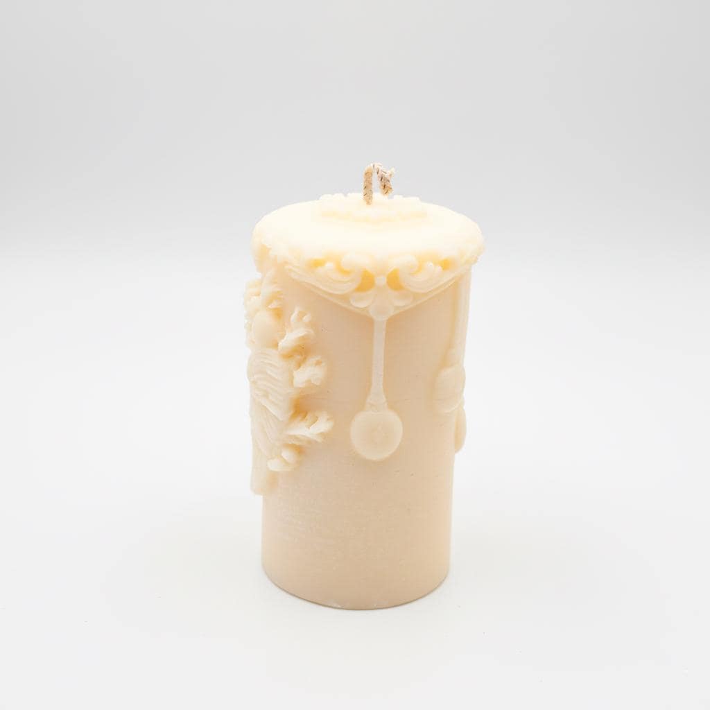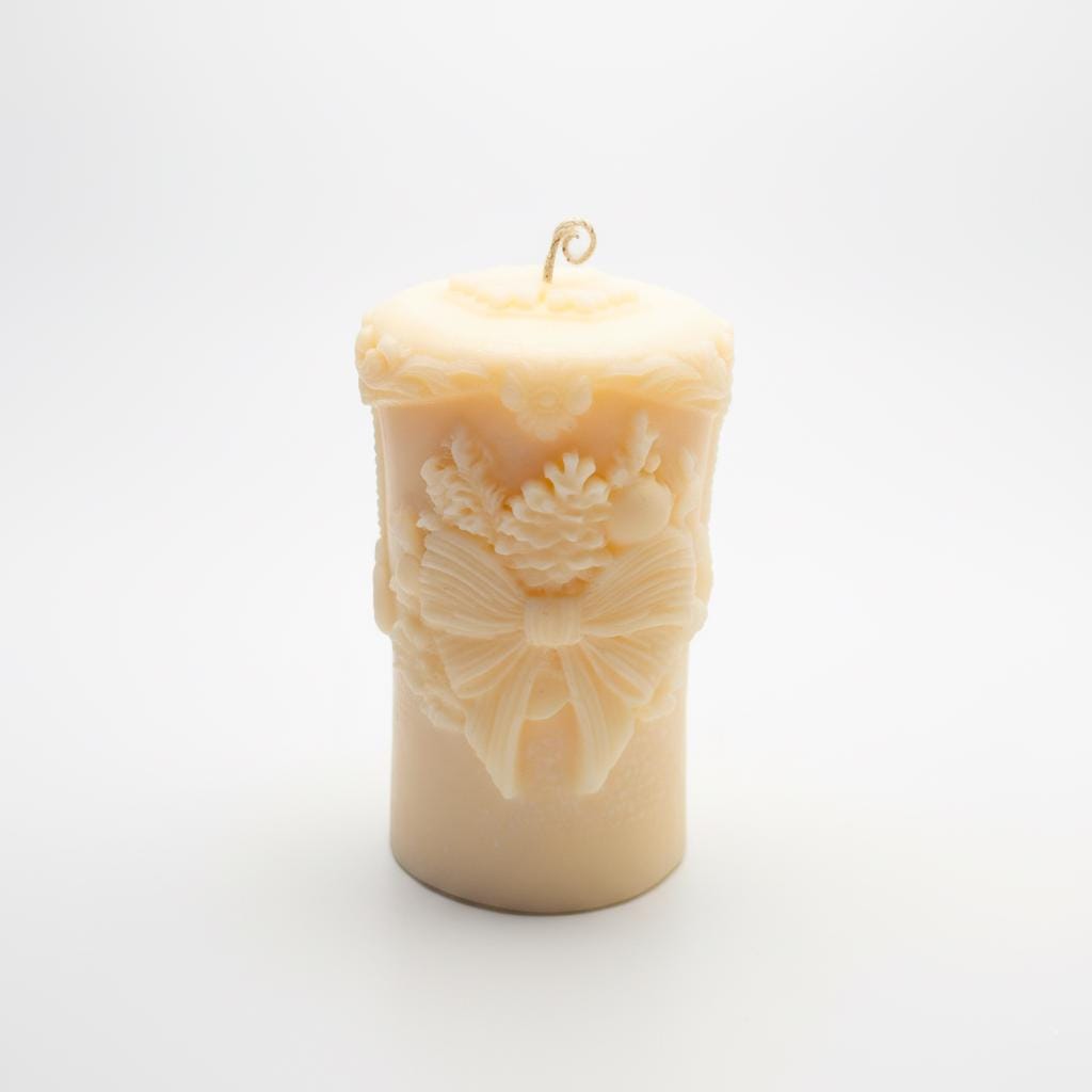 ✨Grace your home with the classic elegance of this beautiful, intricately carved pillar candle. Handcrafted from premium soy wax in a warm, inviting cream or ivory hue, this exquisite piece features distinctive sculpted designs that capture a sense of refined festivity. Around its circumference, you'll discover a charming embossed bow or ribbon motif, beautifully framed by delicate garlands, berries, or foliage accents. The top edge also boasts a subtle decorative border, adding to its artisanal appeal. More than just a source of light, this candle is a handcrafted work of art designed to infuse your home with warmth, serene beauty, and a touch of nostalgic charm. It creates an instant elegant focal point, perfect for holiday celebrations or enhancing your everyday decor.