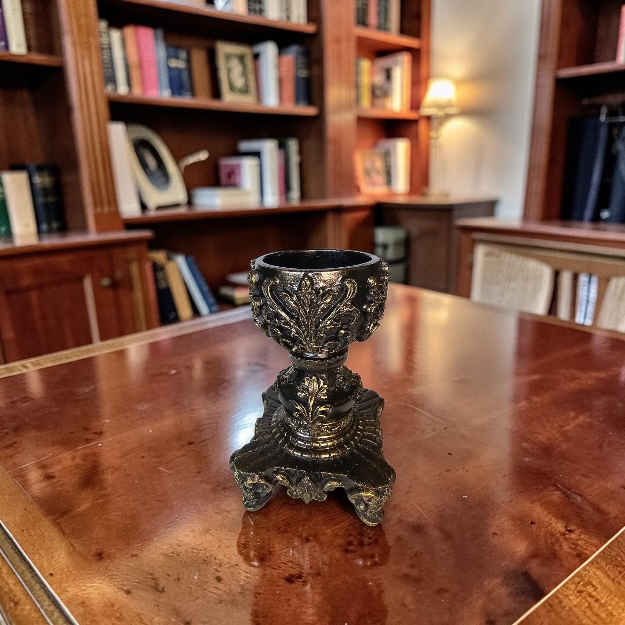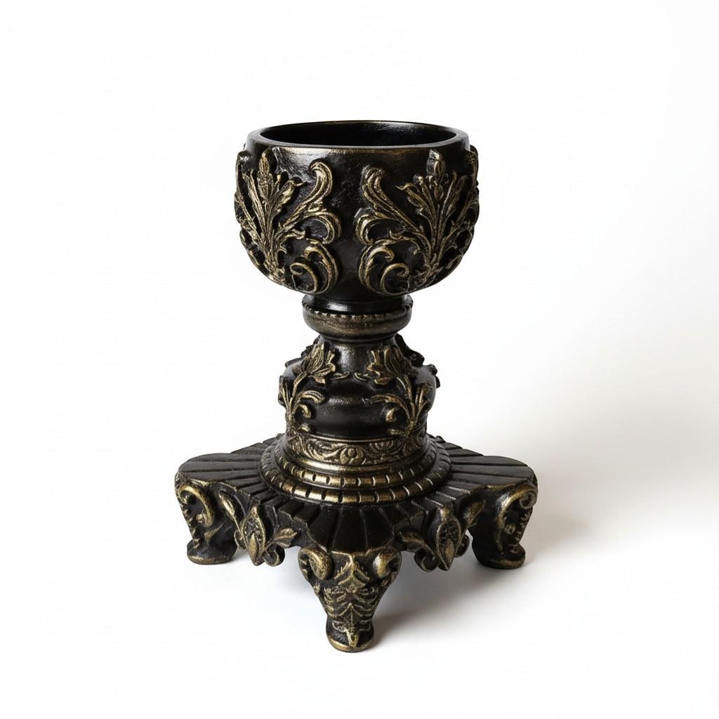 This versatile candle holder is designed to make a profound statement, offering a touch of vintage grandeur to any room. It is available in two distinct finishes to perfectly complement your aesthetic: choose the rich Antique Bronze (as pictured) for a captivating blend of dark, weathered metal with gleaming gold highlights, adding old-world character and a subtle metallic shimmer; or opt for the Classic White finish for a pristine, airy, and effortlessly elegant look that brightens any traditional or modern space. Whether used to cradle a pillar candle, a substantial votive, or as a standalone decorative urn, it promises to be a captivating focal point, creating an atmosphere of refined beauty and historical charm.